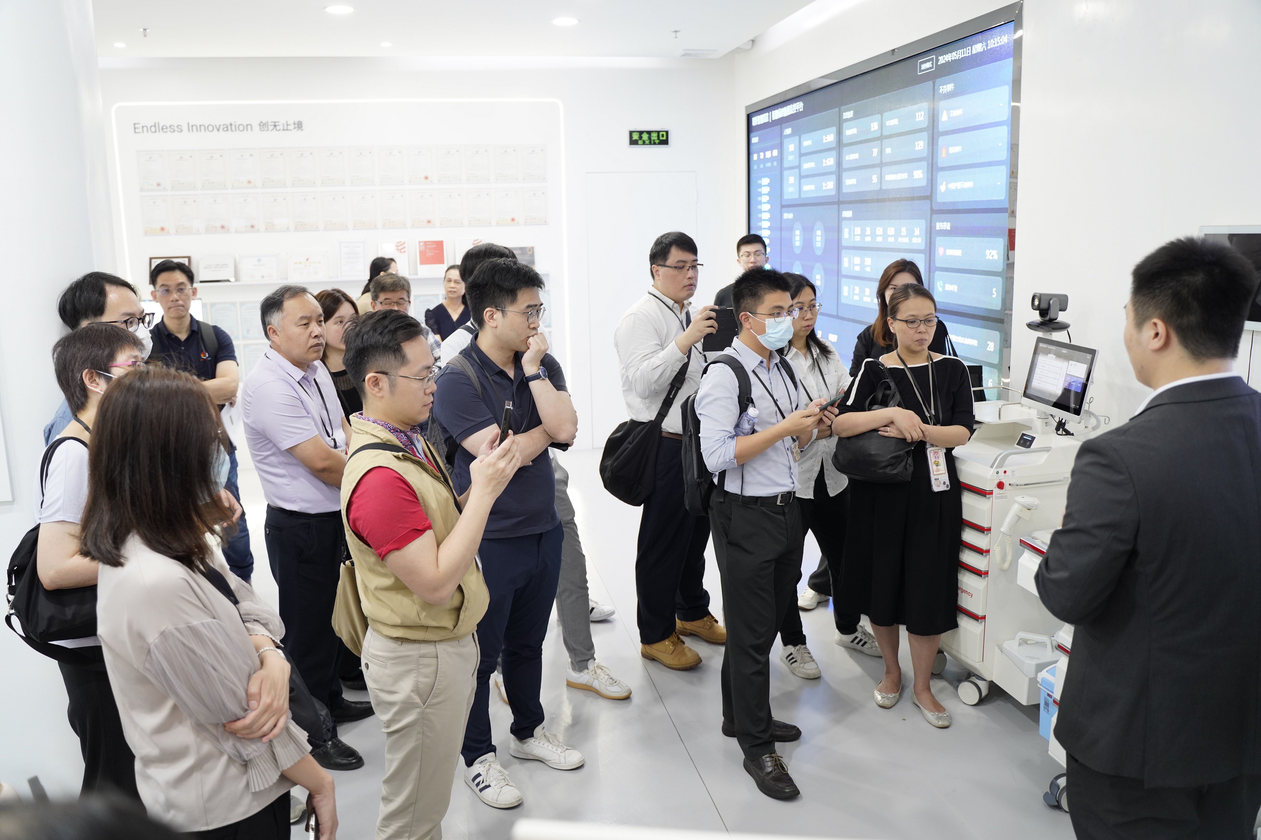 联新作为智慧医疗领域的重要参与者,通过跨界创新,建立从传感器、物联网、AI、机械到临床的完整技术链条,为医院打造完整的智慧病房、智慧药房、智慧手术室整体解决方案。参观过程中,来宾们详尽了解了联新的发展历程,以及整体解决方案布局与应用场景。