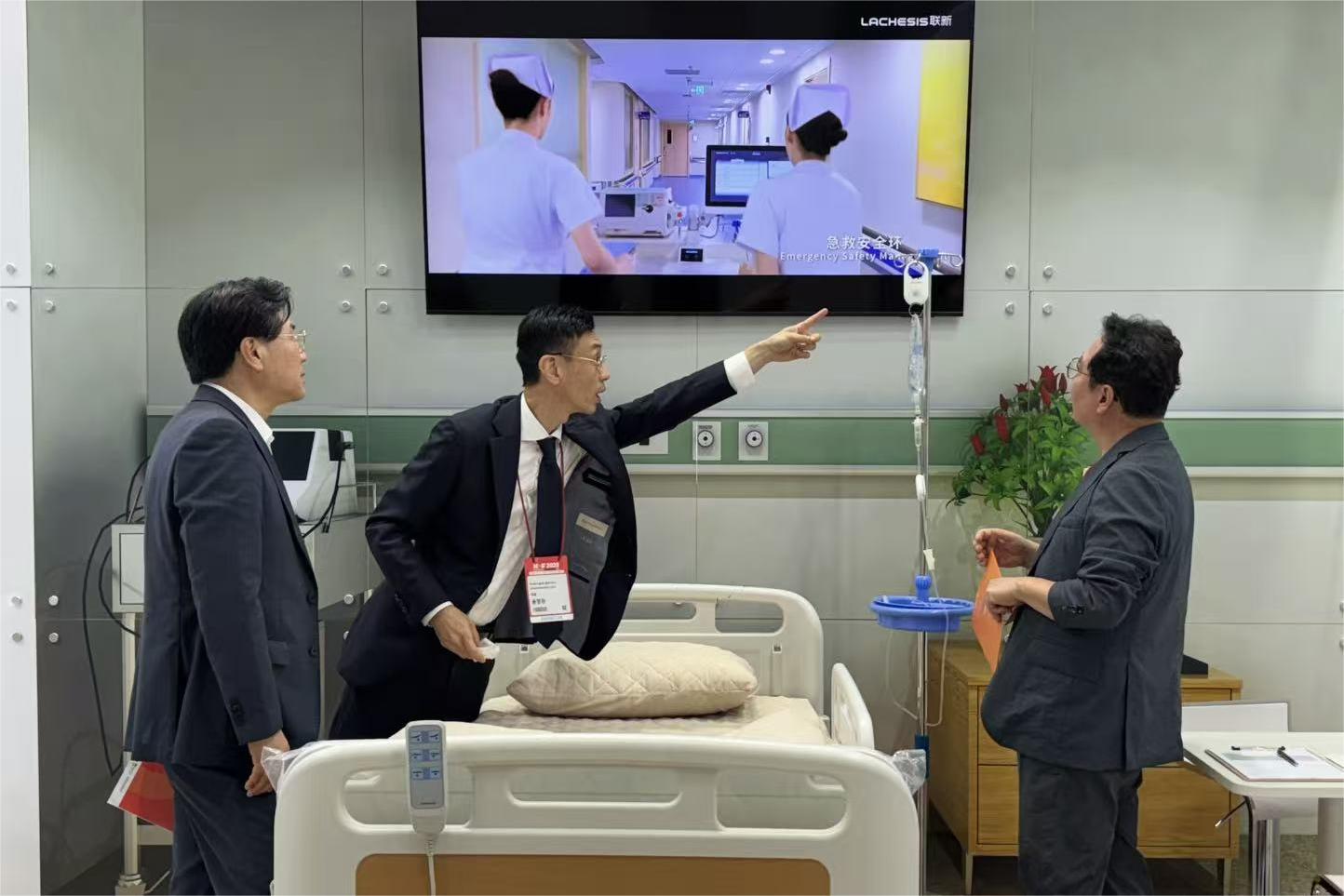 联新携智慧病房整体解决方案亮相大会,吸引了众多海外参观者的目光。