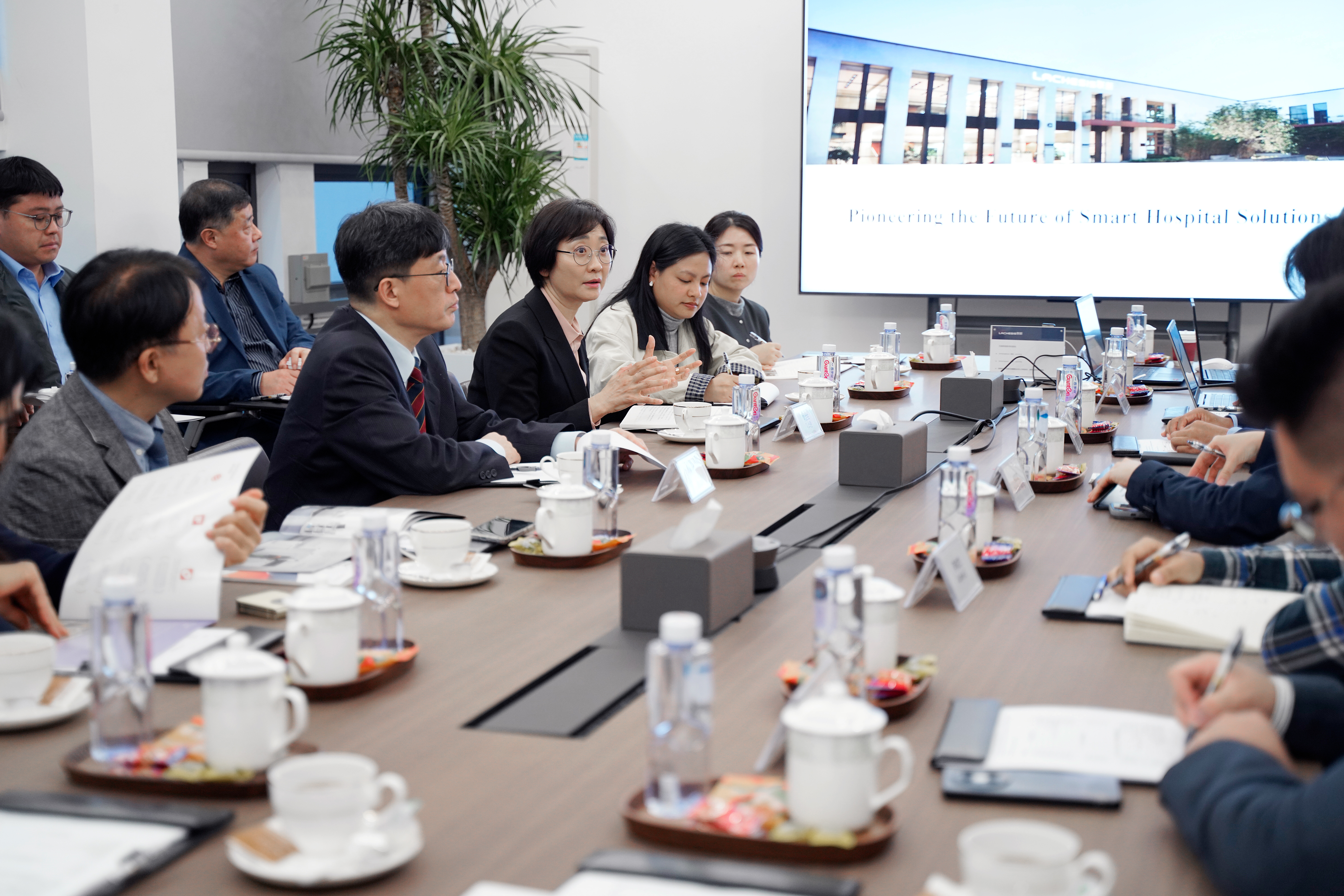 在随后的座谈中,韩国卫生福利部第一副部长李世兰阐述了韩国医疗体系面临的核心挑战:在低出生率、人口老龄化的双重压力下,医疗人力资源结构性短缺问题日益突出,提升现有医疗资源的运行效率与服务质量已迫在眉睫。代表团对联新能够切实减轻医护工作负担、提升患者安全水平的智能化解决方案表现出高度认可,并表示这类以临床需求为导向的技术创新,与韩国希望通过科技手段构建更高效、更可持续的医疗体系的需求高度契合。