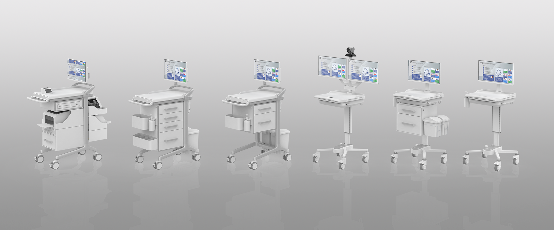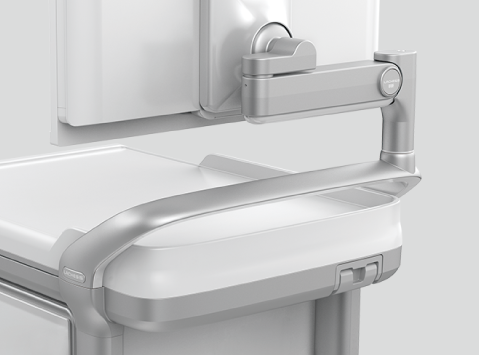 全车线缆隐藏式设计 ,台面无锐角圆弧设计 ,超静音防滑防缠绕脚轮等,让智能移动工作站拥有业界独特的产品气质,更符合医疗使用场景需求。